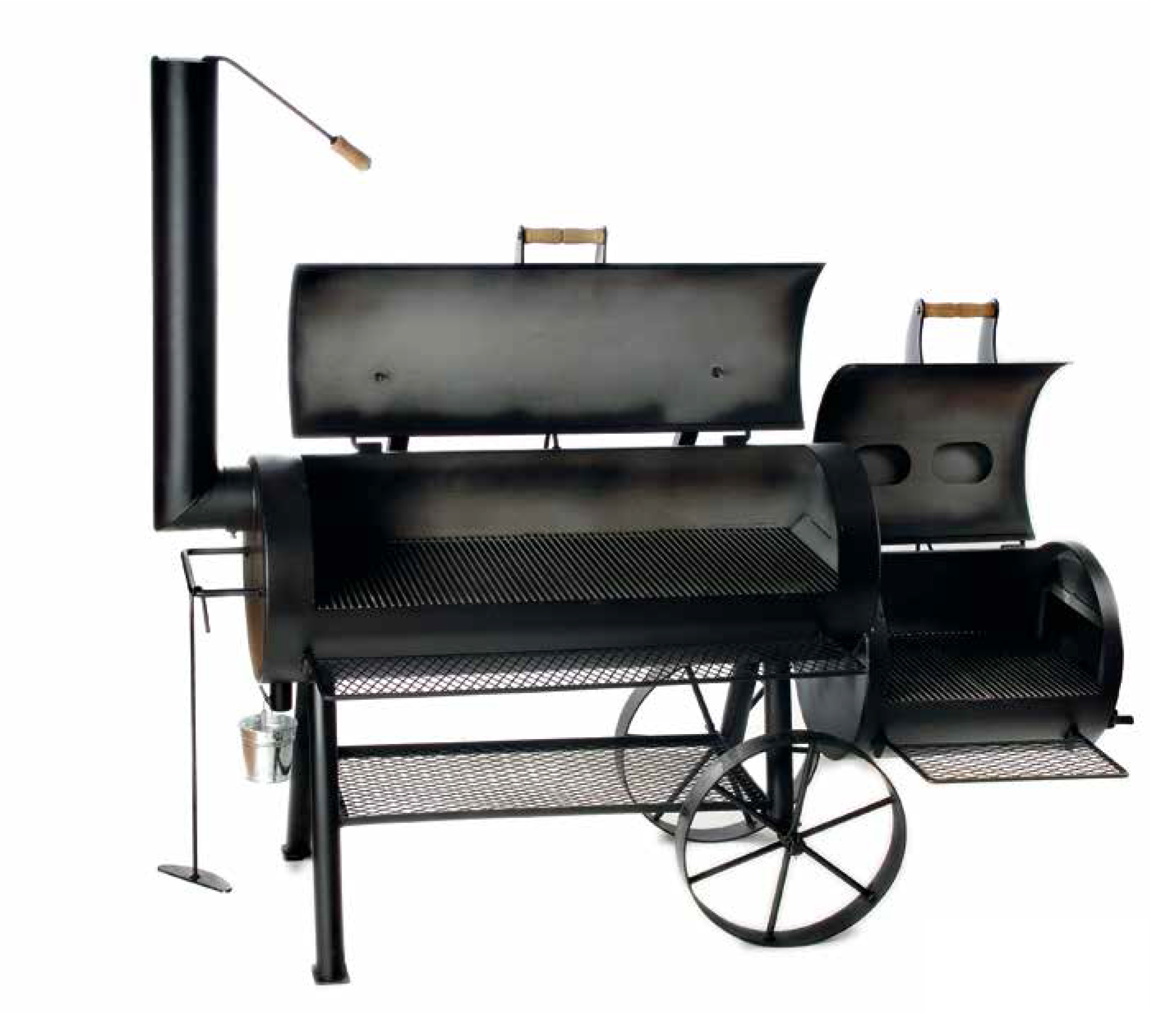 La version XXL du modèle Longhorn : il vous offre énormément d'espace grâce à sa très grande grille de cuisson de 130 cm et à sa large cuve de 20" (soit env. 50 cm) de diamètre. Le couvercle de la chambre de cuisson principale s'ouvre facilement grâce à un système de contrepoids. Ce barbecue est également équipé de deux thermomètres et de larges poignées au niveau du foyer.
