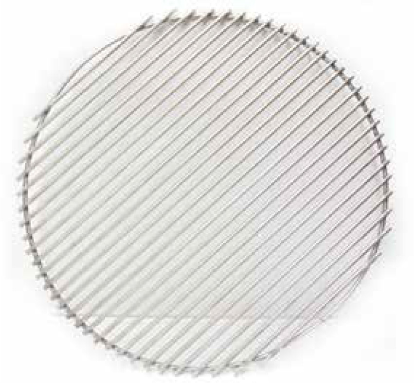 Grille de cuisson en acier inoxydable d'un diamètre d'environ 50cm.
