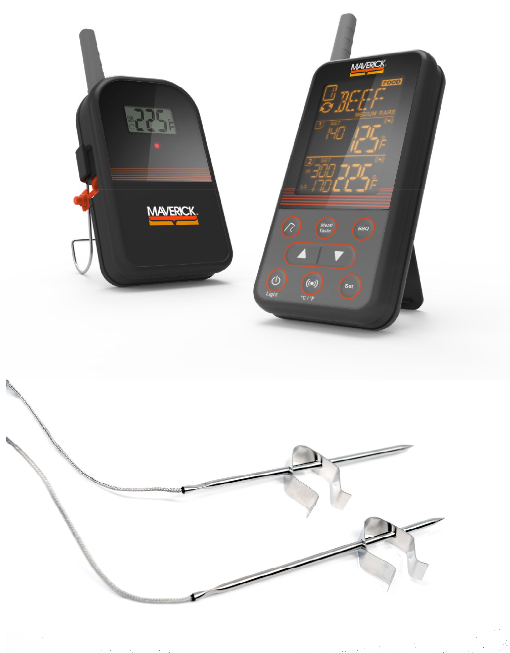Le tout nouveau thermomètre sans fil pour BBQ et fumoir RT-40 de Maverick établit de nouveaux standards. C'est la version encore améliorée du très populaire Maverick ET-733, riche de nombreuses nouvelles fonctionnalités :