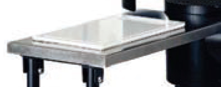 Planche à découper professionnelle en plastique, prévue pour une utilisation avec un support au format GN 1/1. Une large ouverture sur le côté permet de disposer facilement des déchets et résidus de découpe.