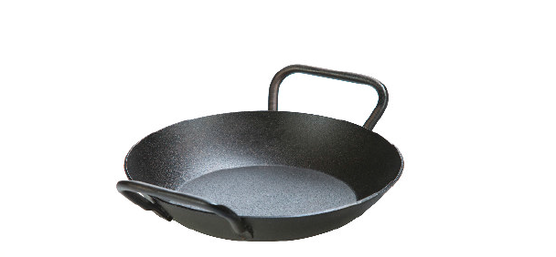 Poêle en acier carbone huilée Lodge, fabriquée aux USA. Avec 2 poignées. Prête à l'usage.
