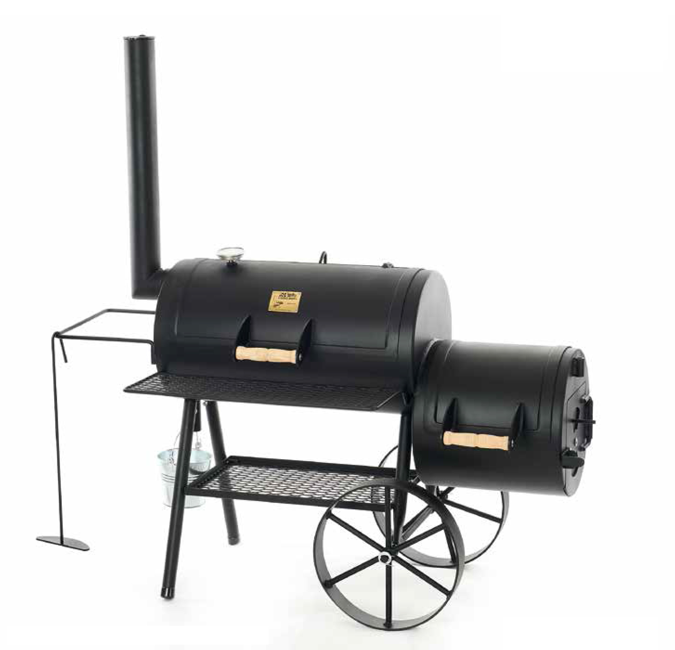 Un barbecue Smoker de la meilleure qualité ! Son système de cuisson permet de griller, cuire indirectement, cuire au barbecue, fumer les aliments et réaliser des cuissons traditionnelles. Ce barbecue s'utilise avec du bois de hêtre ou d'arbres fruitiers ou encore du charbon de bois. Fabrication en acier massif de 6,35 mm d'épaisseur.